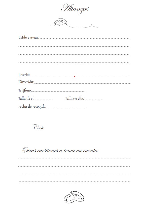 - Una ficha nupcial con los datos más importantes del día de la boda.